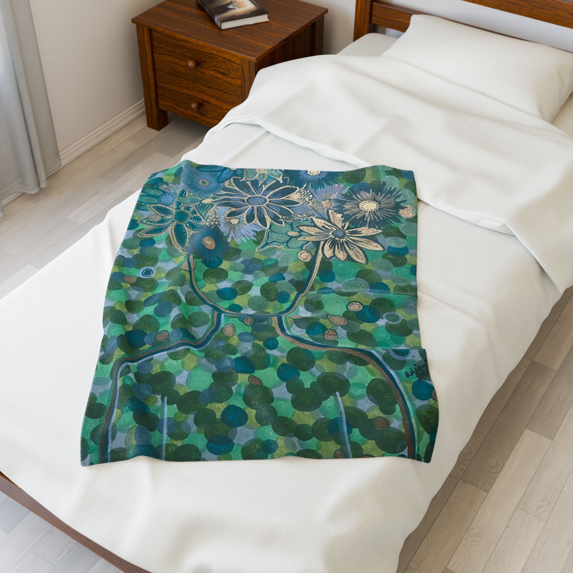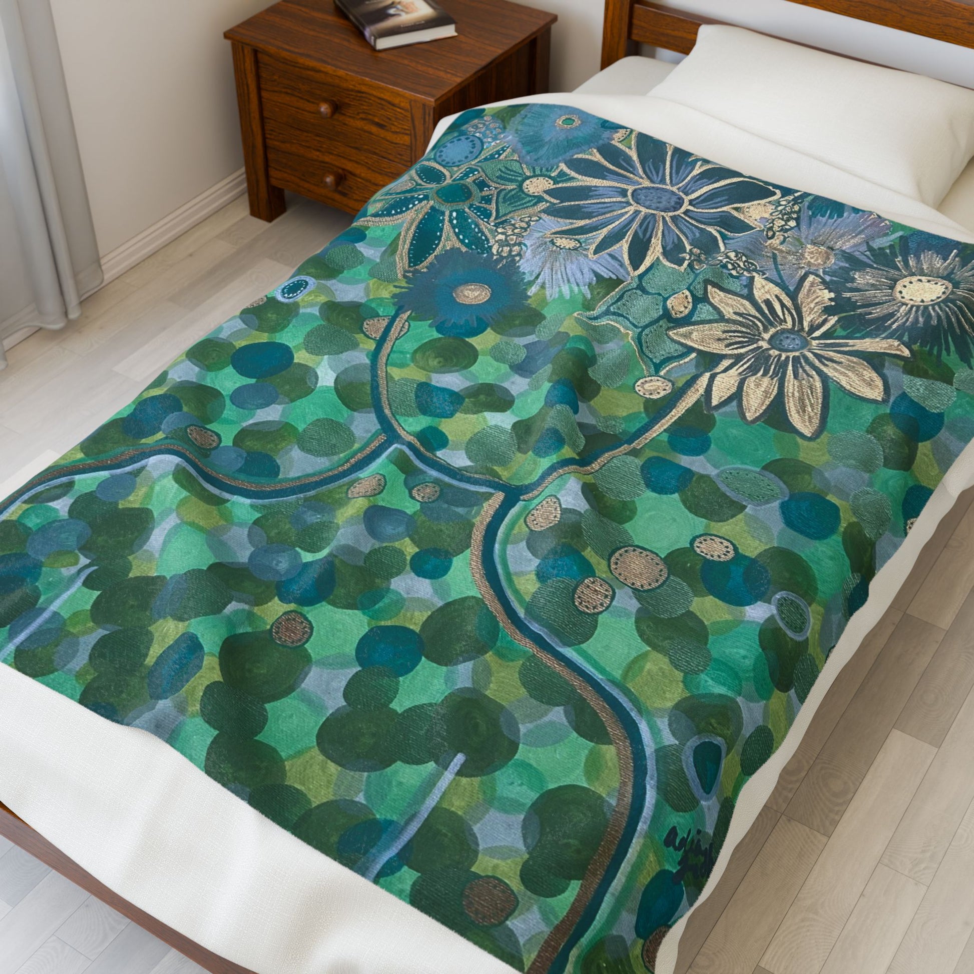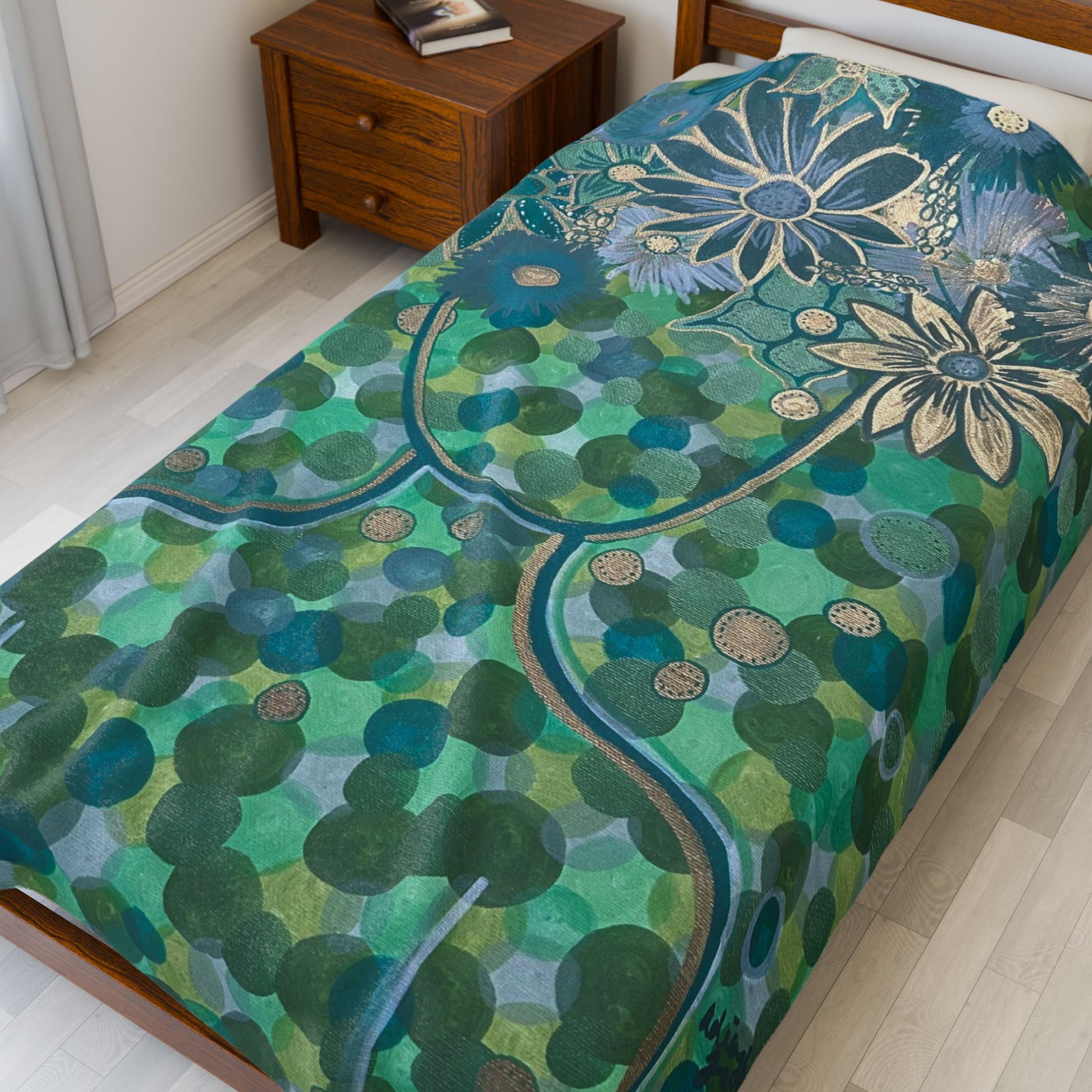 Green Goddess Velveteen Plush Blanket, Cozy Home Decor, Flower Print Throw, Gift for Her, Soft Blanket for All Seasons