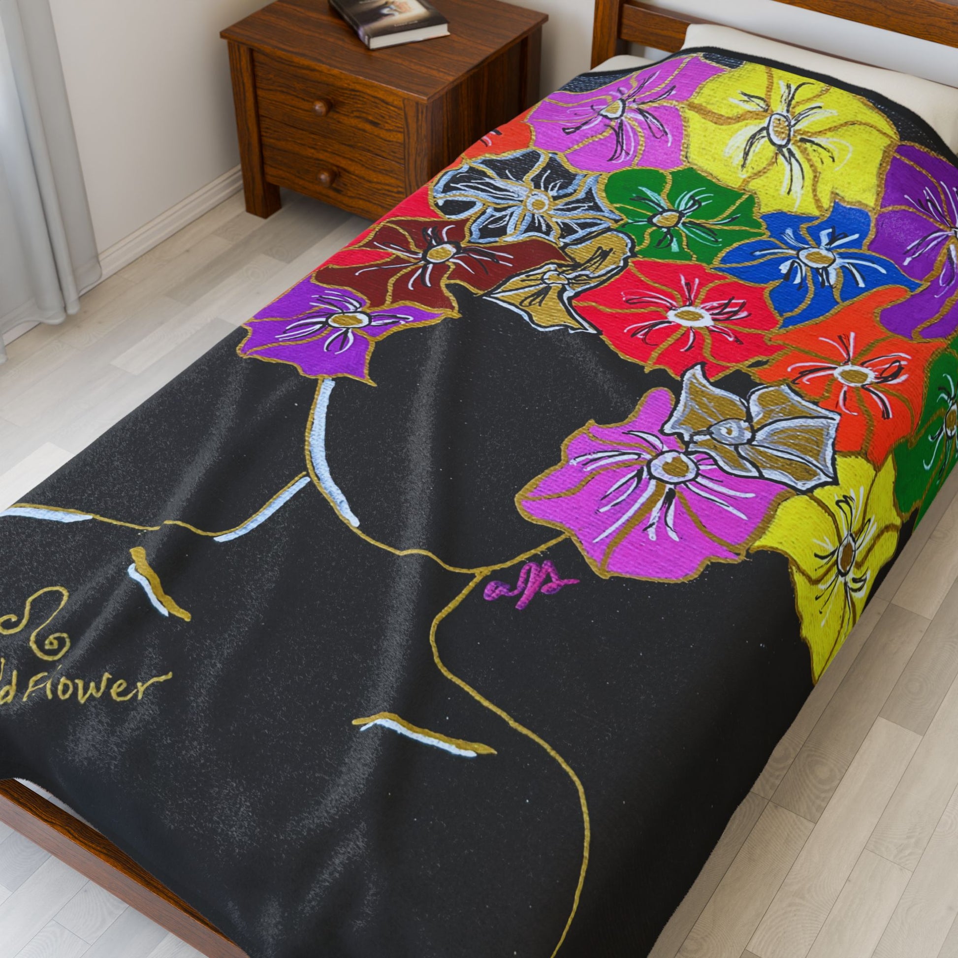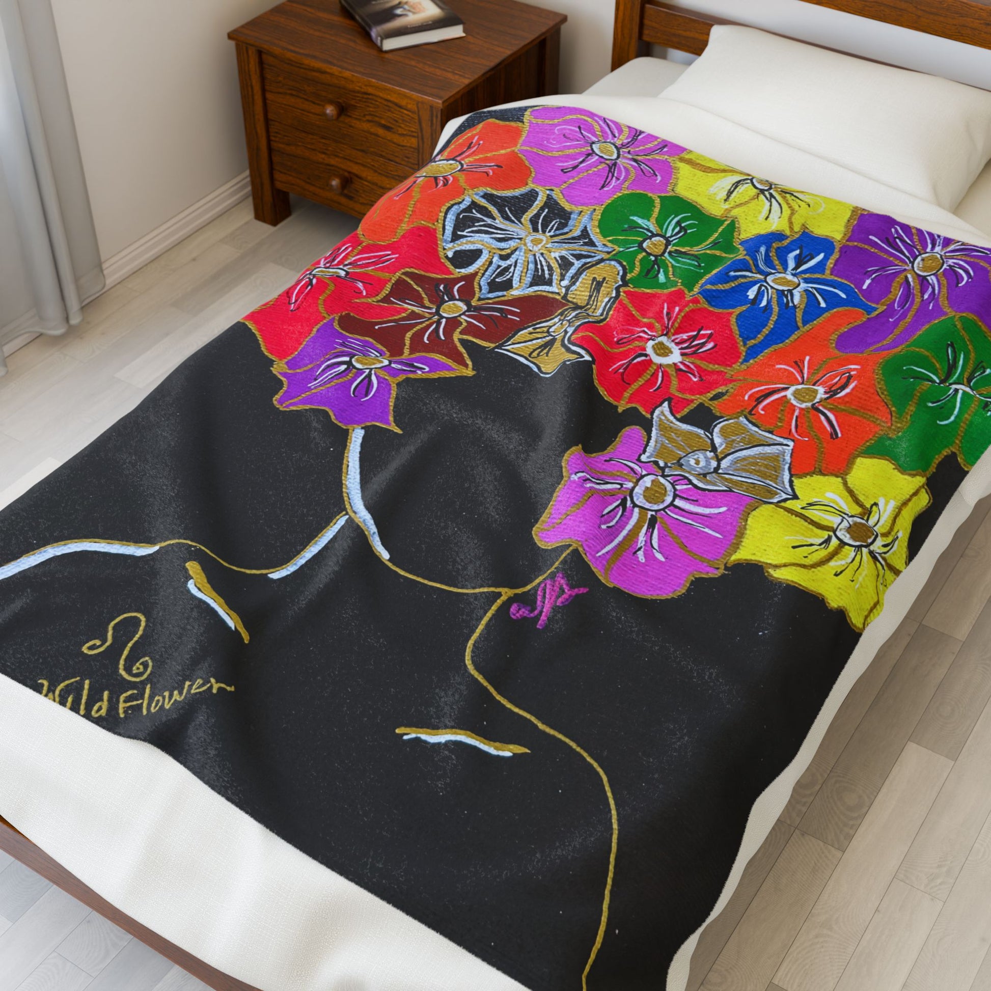 Wild Flower Plush Blanket, Cozy Home Decor, Flower Print Throw, Gift for Her, Soft Blanket for All Seasons